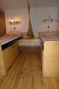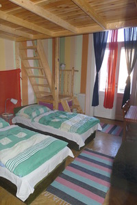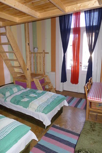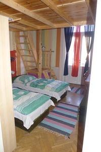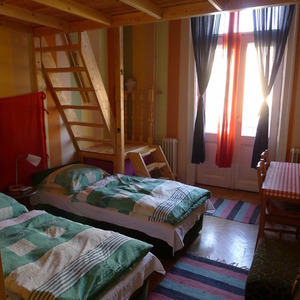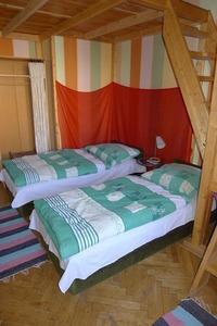 4 beds, 2 downstairs, 2 on the loft. Instead of being numbered, like at other Hostels in Budapest, here each of the rooms have their own names. Own TV in the room.