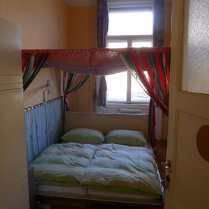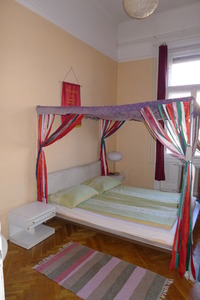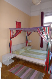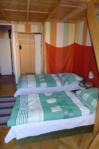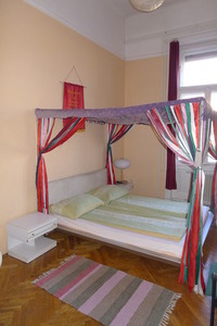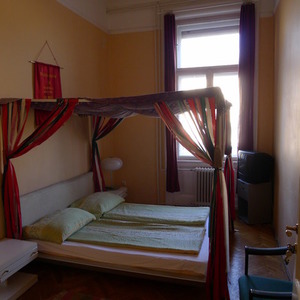 Double bed, shared bathroom, suitable for 2 persons. Each room is designed in a different style by the suggestions of different Hungarian artists. Own TV in the room.